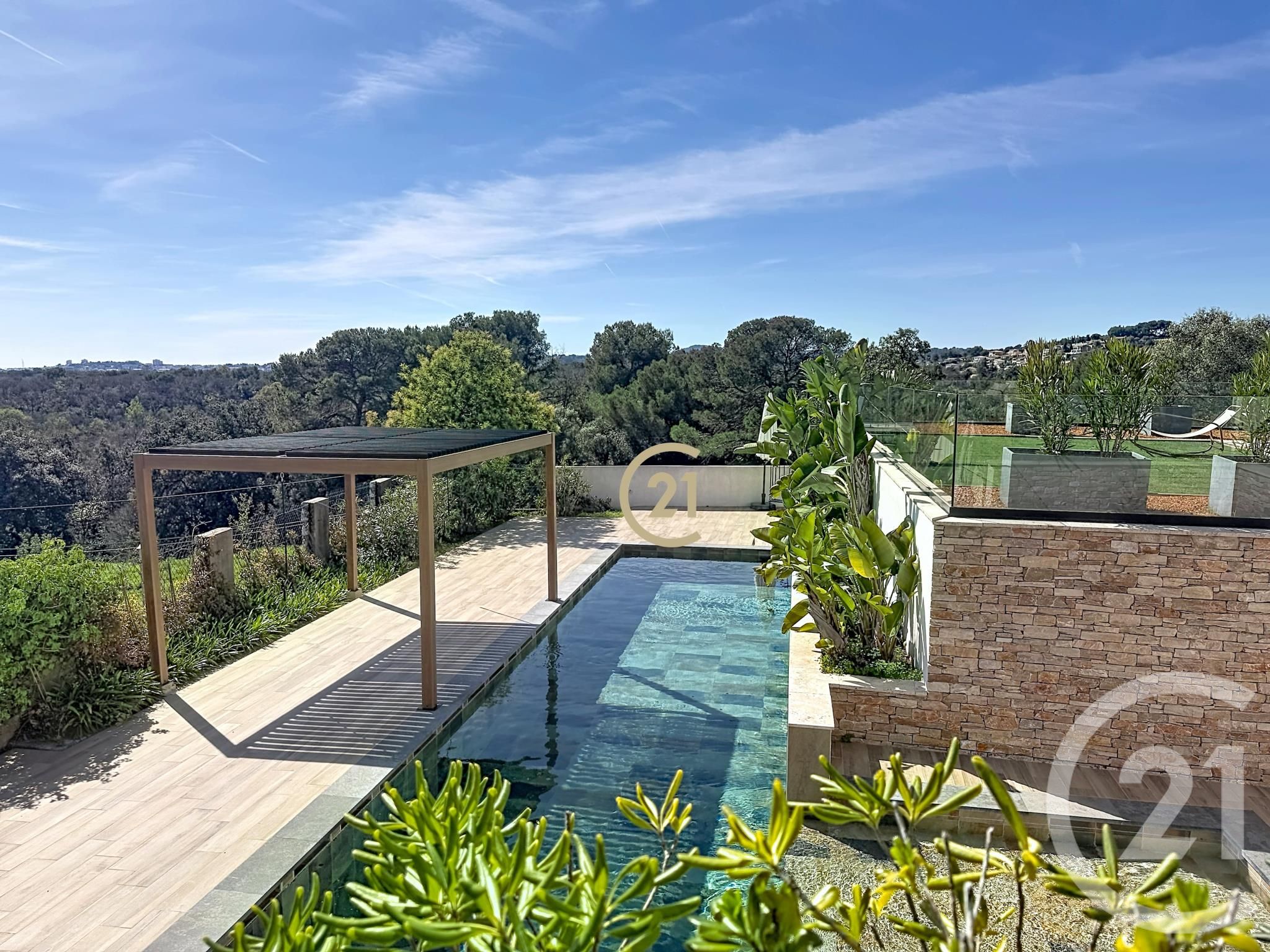 La terrasse donne un accès direct à la piscine de la copropriété.
